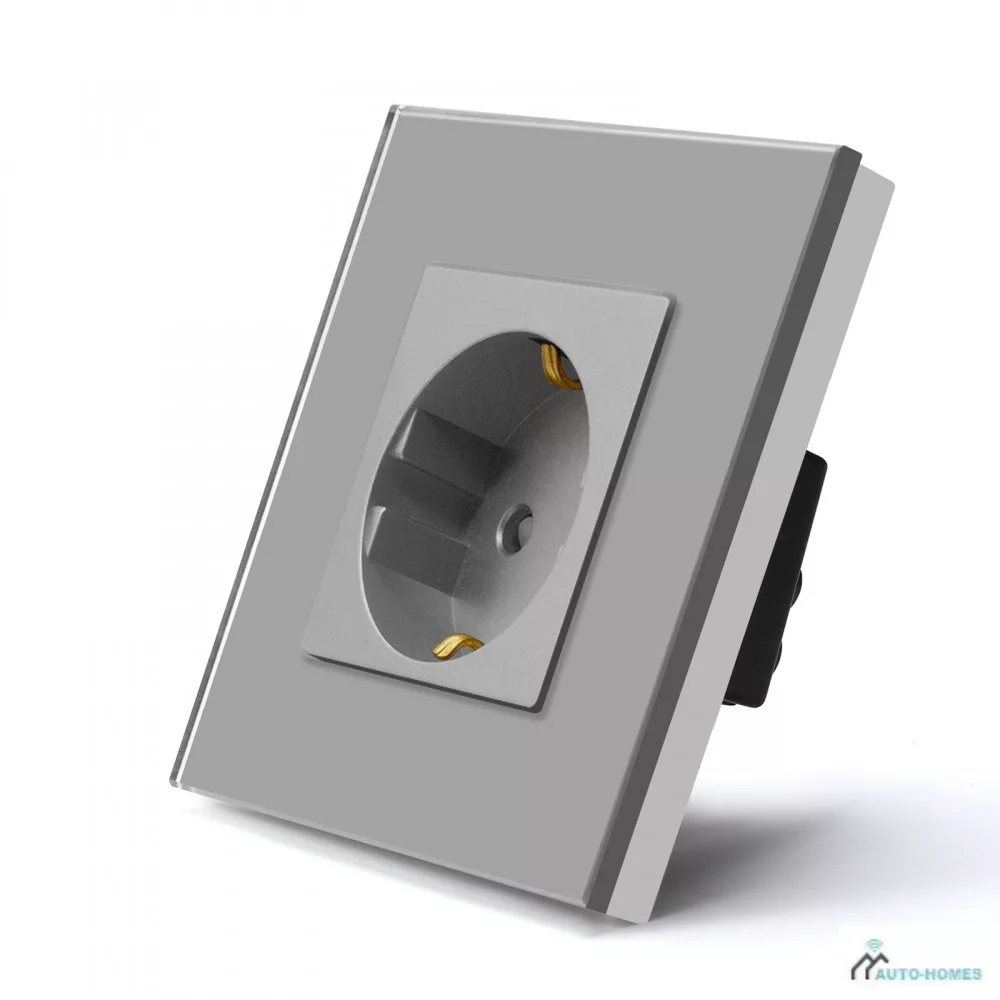 Size: 82mm*82mmRated Current: 16AInput Voltage: AC 110~250VStandard: EU StandardPanel material: Crystal tempered glassColour: grey