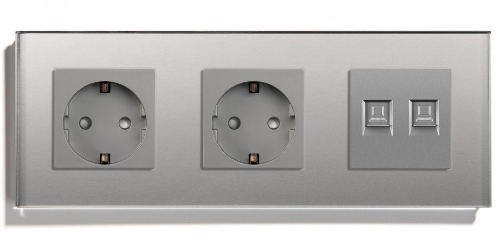 Size: 224mm*82mmRated Current: 16AInput Voltage: 110~250V/50/60HzStandard: EU StandardTypes of: two standard socket + dual RJ45 - CAT6Panel material: 3mm Crystal tempered glass panelColour: silver