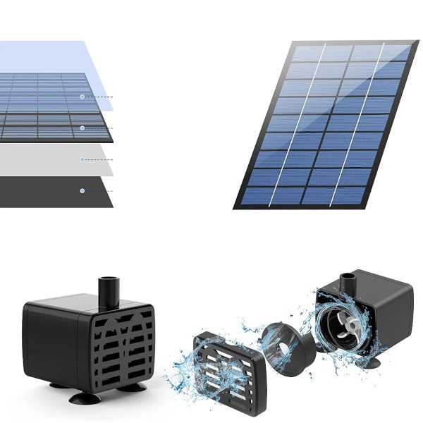 DIY solar water pumps kit, which contains solar fountain kit, can be made into a bird bath fountain and fish tank water circulation tools. Help birds and fish to maintain a vibrant ecosystem. Replace the nozzles with water pipes to make different water feature that will make your garden look comfortable and inviting.