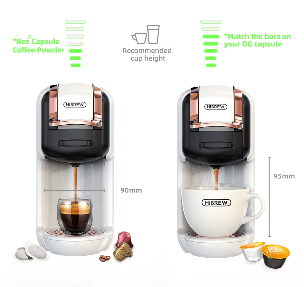 Enjoy hot and aromatic coffee in the morning. The HiBREW H2B coffee maker is distinguished by a pressure of 19 bars and a rated power of 1450 watts. What's more, it is compatible with various types of capsules. In addition, it allows you to adjust the intensity of your drink and is equipped with a 600 ml water tank. It also allows you to prepare iced coffee.
