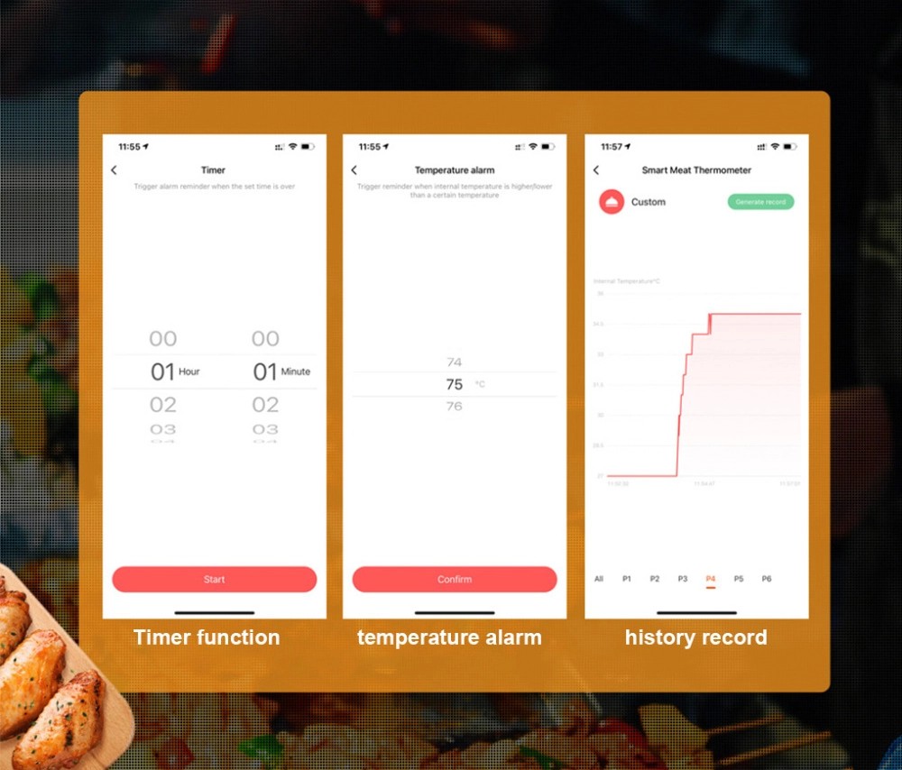 Wireless and smart: The grilling thermometer is easy to connect with your mobile phones and sends notifications to your smartphone when the temperature is over high.