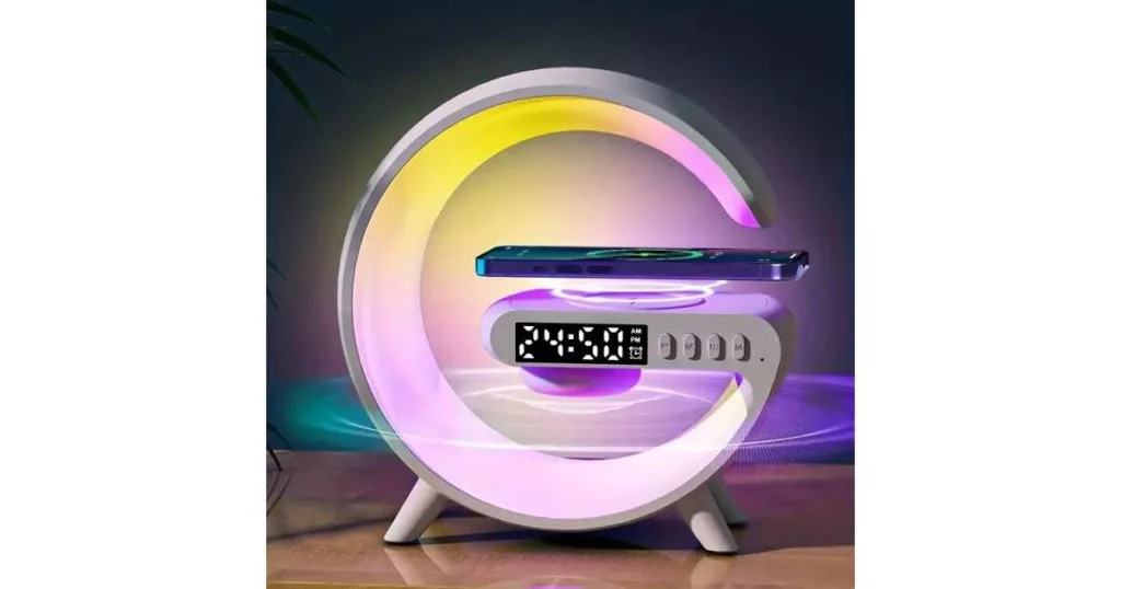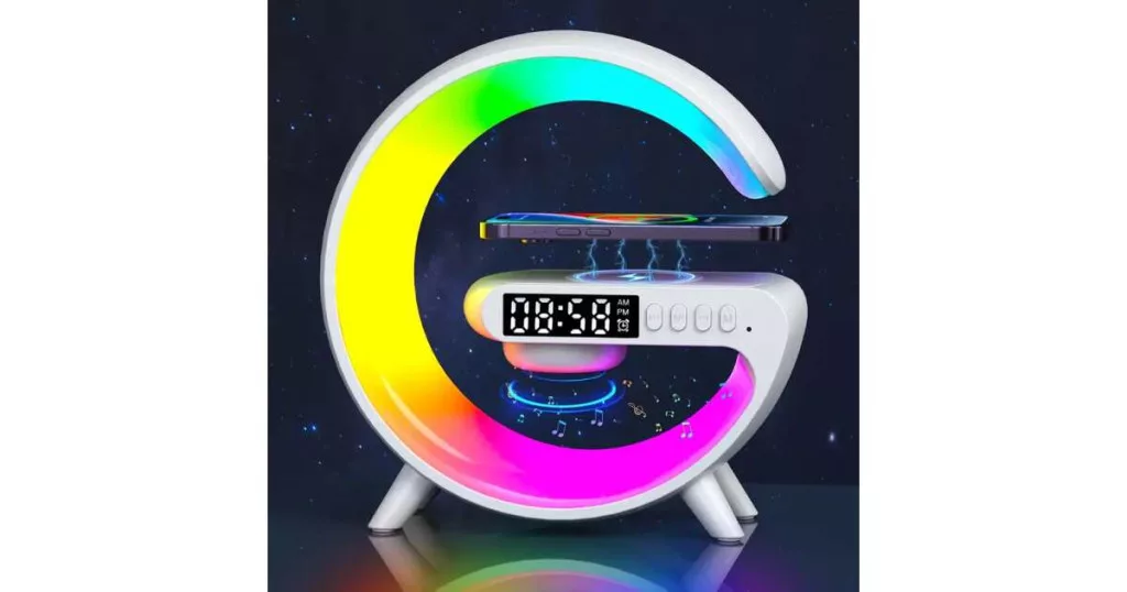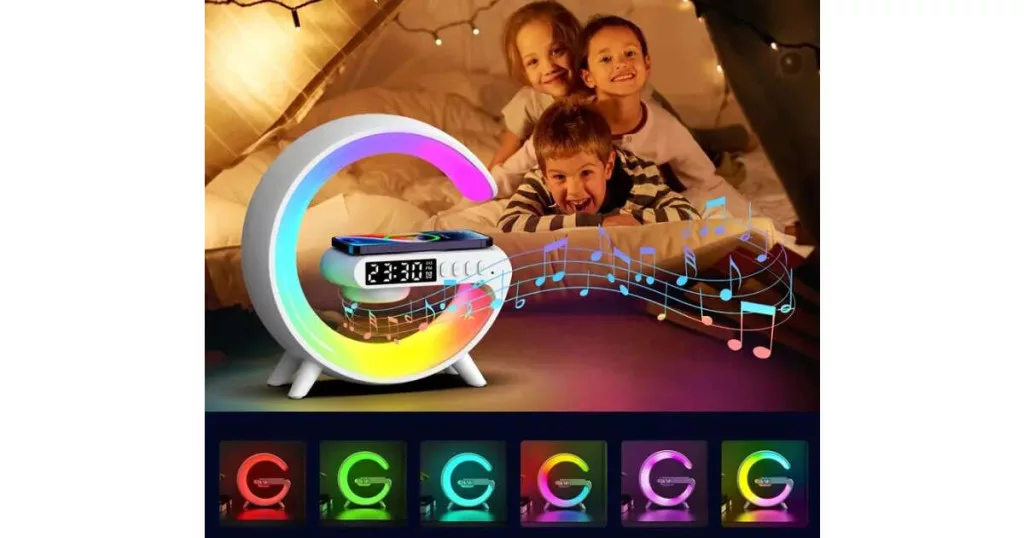 Carregadorsemfiomultifuncional,3em1,Stand Speaker,LED,RGB,Luz noturna,