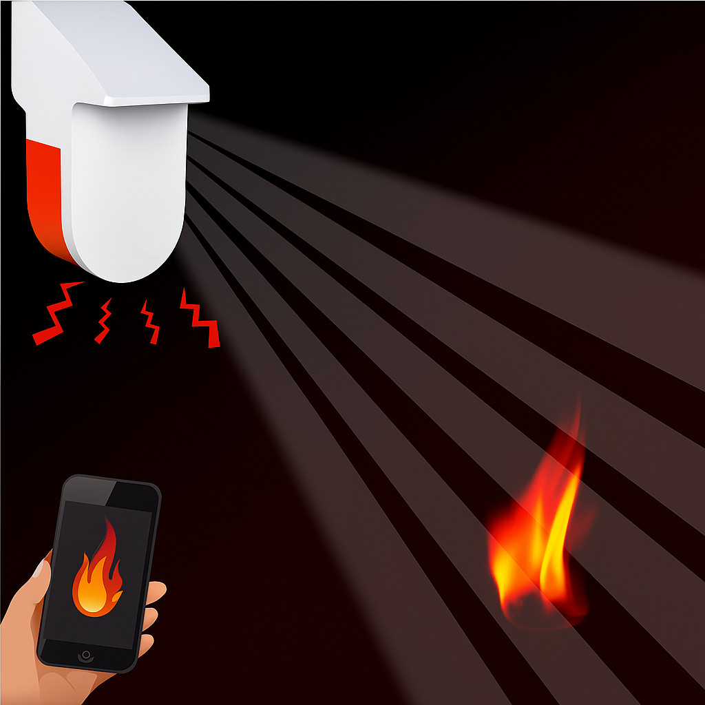 This smart fire protection device uses an ultraviolet sensor to detect open flames – it can detect even small fires from a distance of 3–5 meters, and larger flames from up to 30 meters. The device triggers an immediate alarm with sound and flashing light, and sends a push notification through the Tuya Smart or Smart Life app. It connects to a 2.4 GHz WiFi network and can be easily installed with screws. Ideal for early fire detection in gas stations, chemical plants, warehouses, hotels, and homes.