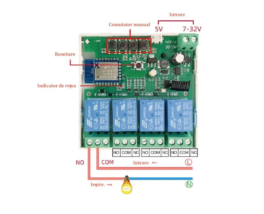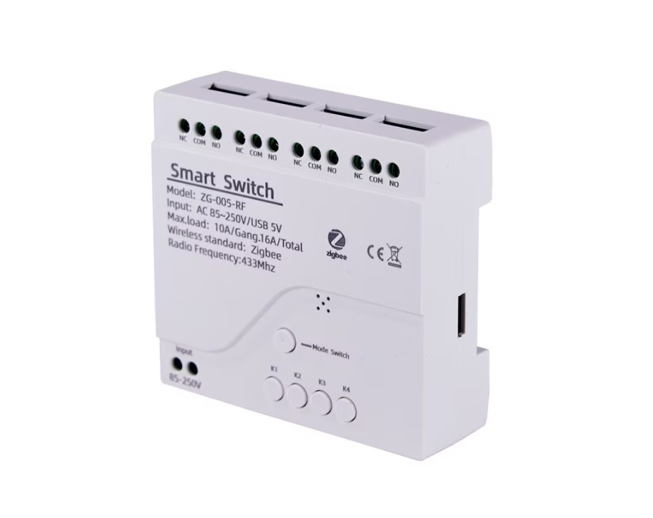4-channel Smart WiFi relay, Bluetooth control, 85-250V, white, dimensions 81x76x28mm