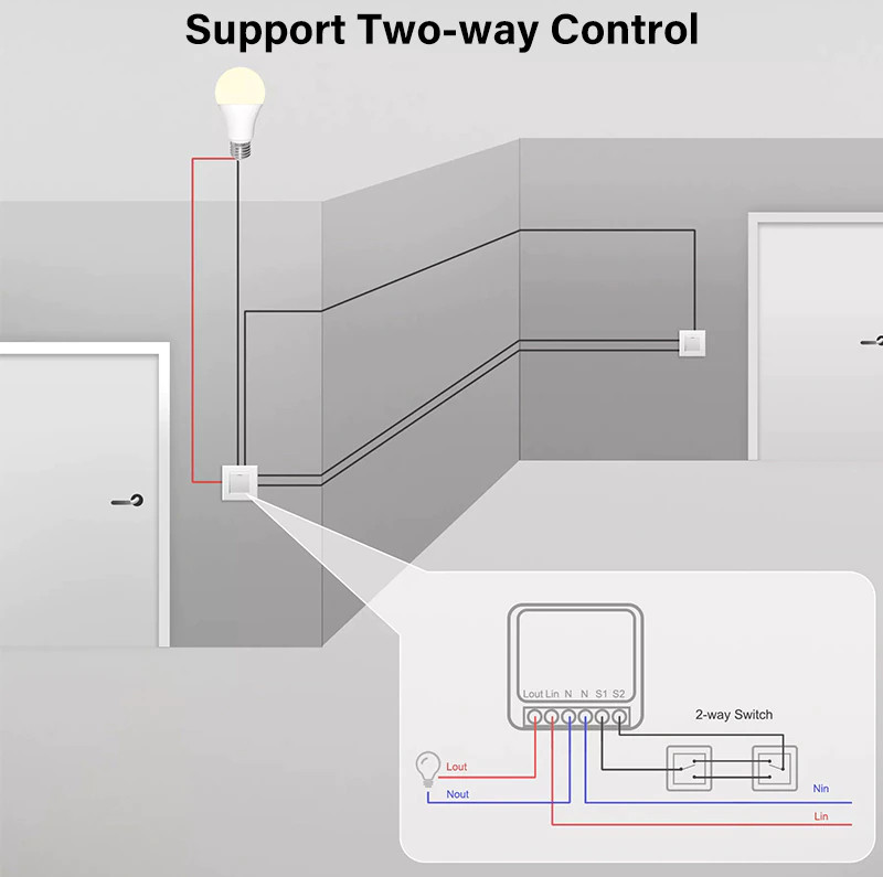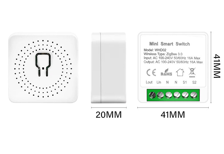 1. ZigBee mini smart switch is divided into 10A and 16A, 16A is suitable for more power equipment. You can use smart switches on household appliances and light bulbs so that you can turn on or off the device with your mobile phone. It can be timed, voice control (Alexa, Google assistant, Siri), and smart scenes can also be created. The mini figure can put the smart switch in the switch cassette, so it does not need to be placed behind the light bulb. Support three wiring methods, no switch/one-way switch/two-way switch. (The neutral wire is required)
