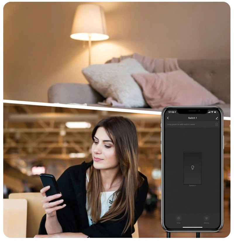 Support voice assistants such as Tmall Genie, Alexa, GoolHome, and realize functions such as switches; "Alexa, turn on the kitchen lights." You can turn on the lights in one sentence and enjoy a convenient smart life.